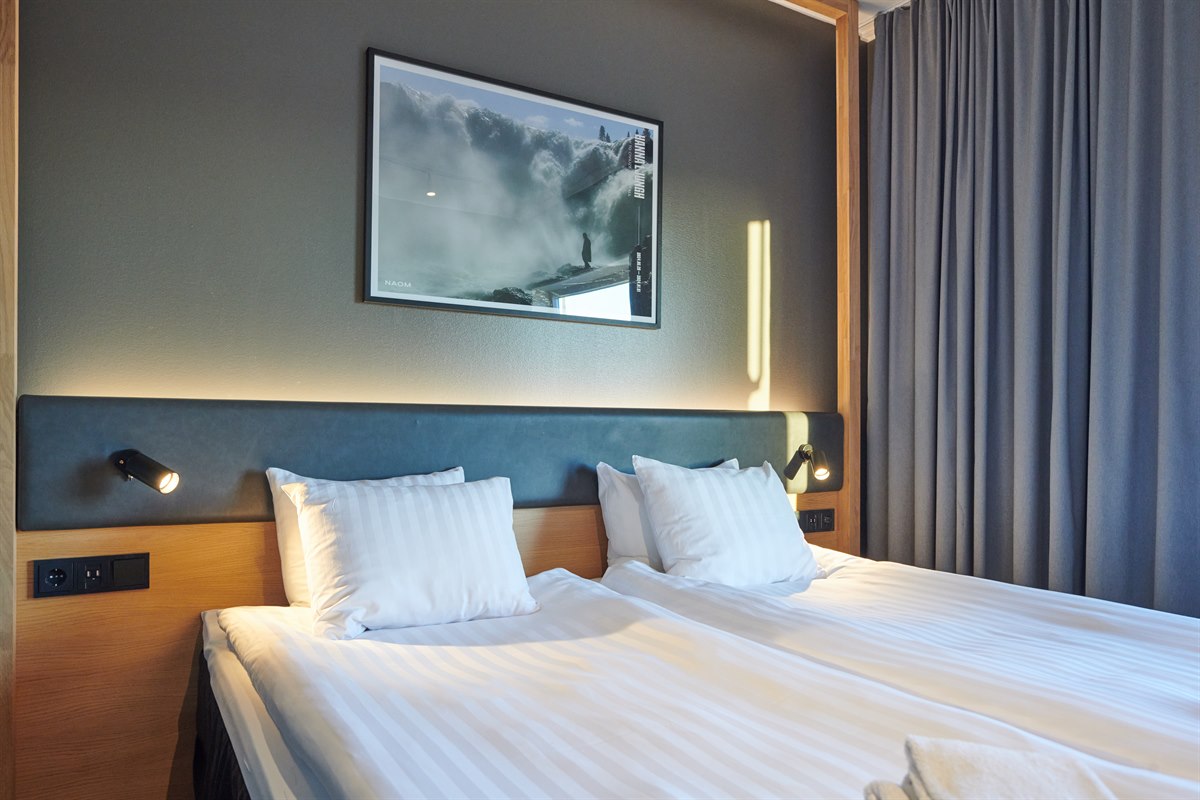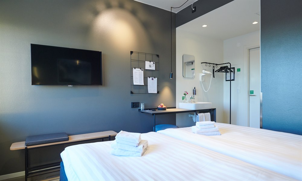 På sena kvällar stängs huvudentrén, men du är välkommen att använda nattentrén precis bredvid. Där finns även en självincheckningsautomat. Har du frågor, ring på klockan eller kontakta receptionen via telefon.